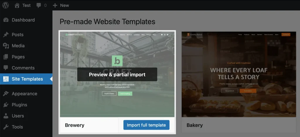 - Go to Dashboard → Site Templates.
